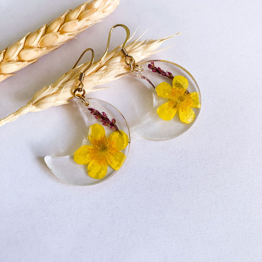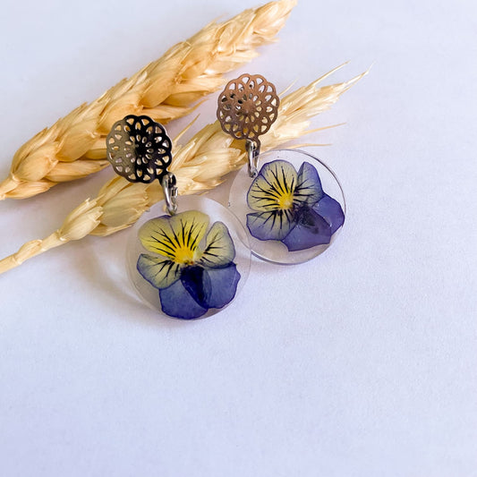 Cercei cu flori de Nu-mă-uita și flori galbene de câmp