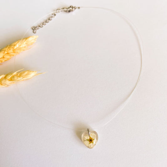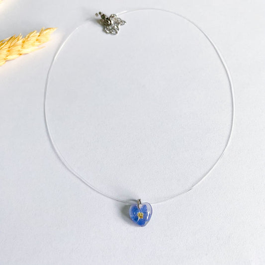 Lănțișor pe fir transparent cu floare de Nu-mă-uita inimă