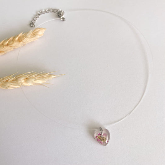Lănțișor pe fir transparent cu floare roz Alyssum