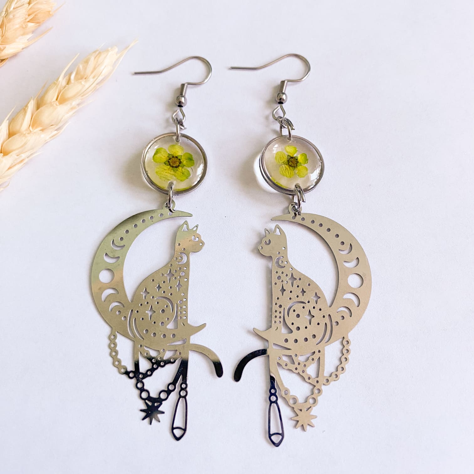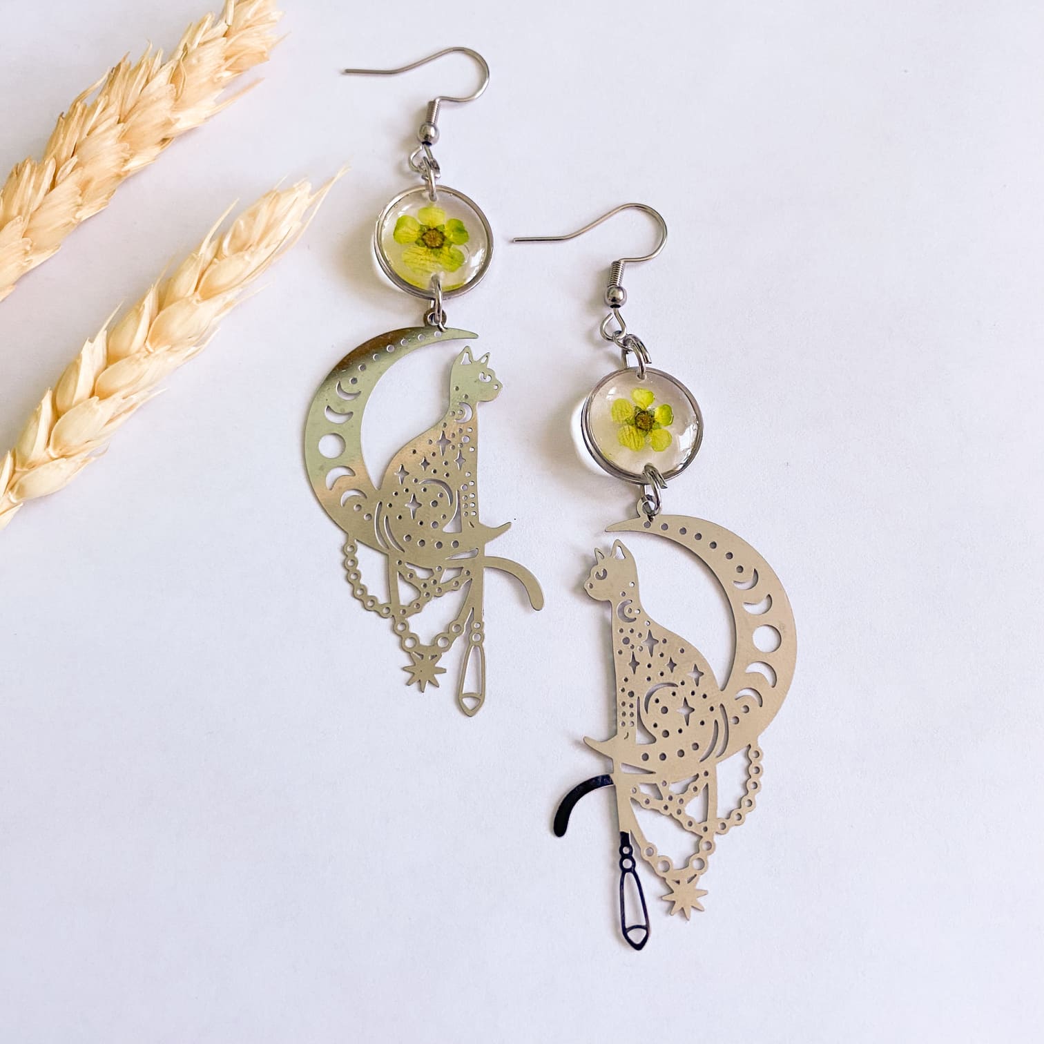 Cerceii Zendora cu flori naturale sunt alegerea ideală pentru un cadou, atât pentru tine, cât și pentru persoanele dragi din viața ta. Inspirați din natură, conțin flori naturale încapsulate în rășină și completate cu accesorii elegante din inox, în formă de pisici.