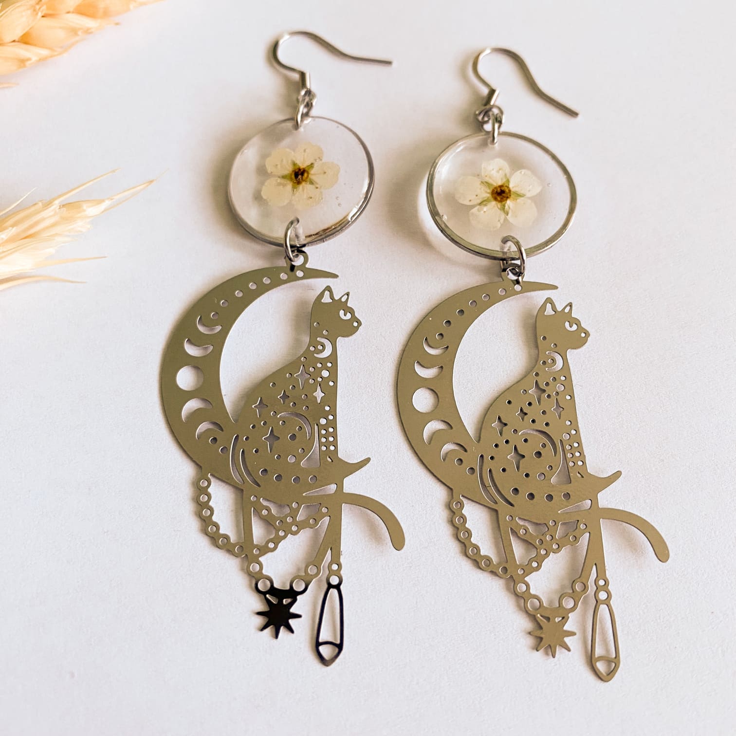 Cerceii Zendora cu flori naturale sunt alegerea ideală pentru un cadou, atât pentru tine, cât și pentru persoanele dragi din viața ta. Inspirați din natură, conțin flori naturale încapsulate în rășină și completate cu accesorii elegante din inox, în formă de pisici.