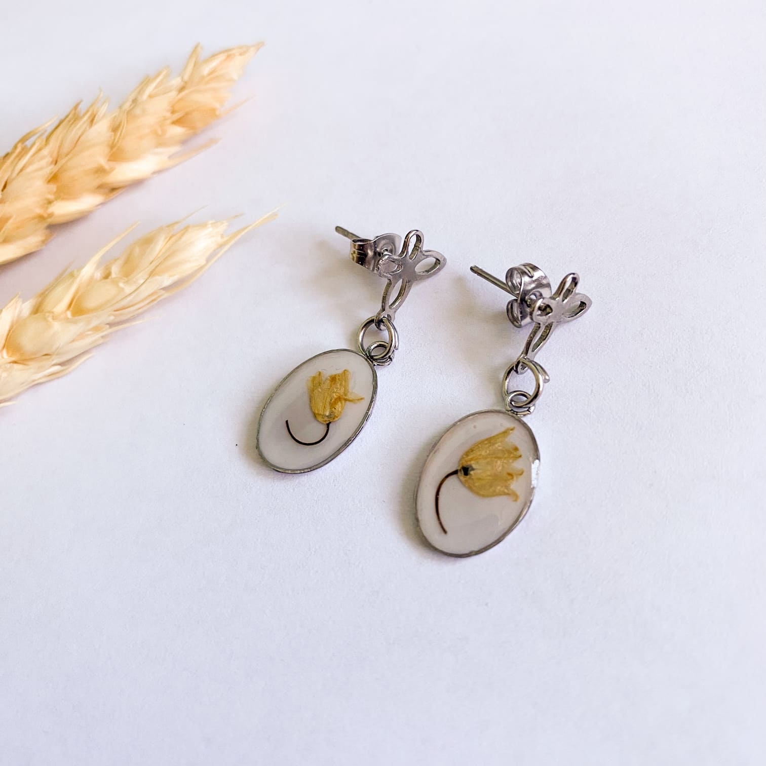 - Materiale folosite: rășină UV, flori natuale, accesorii din oțel inoxidabil.