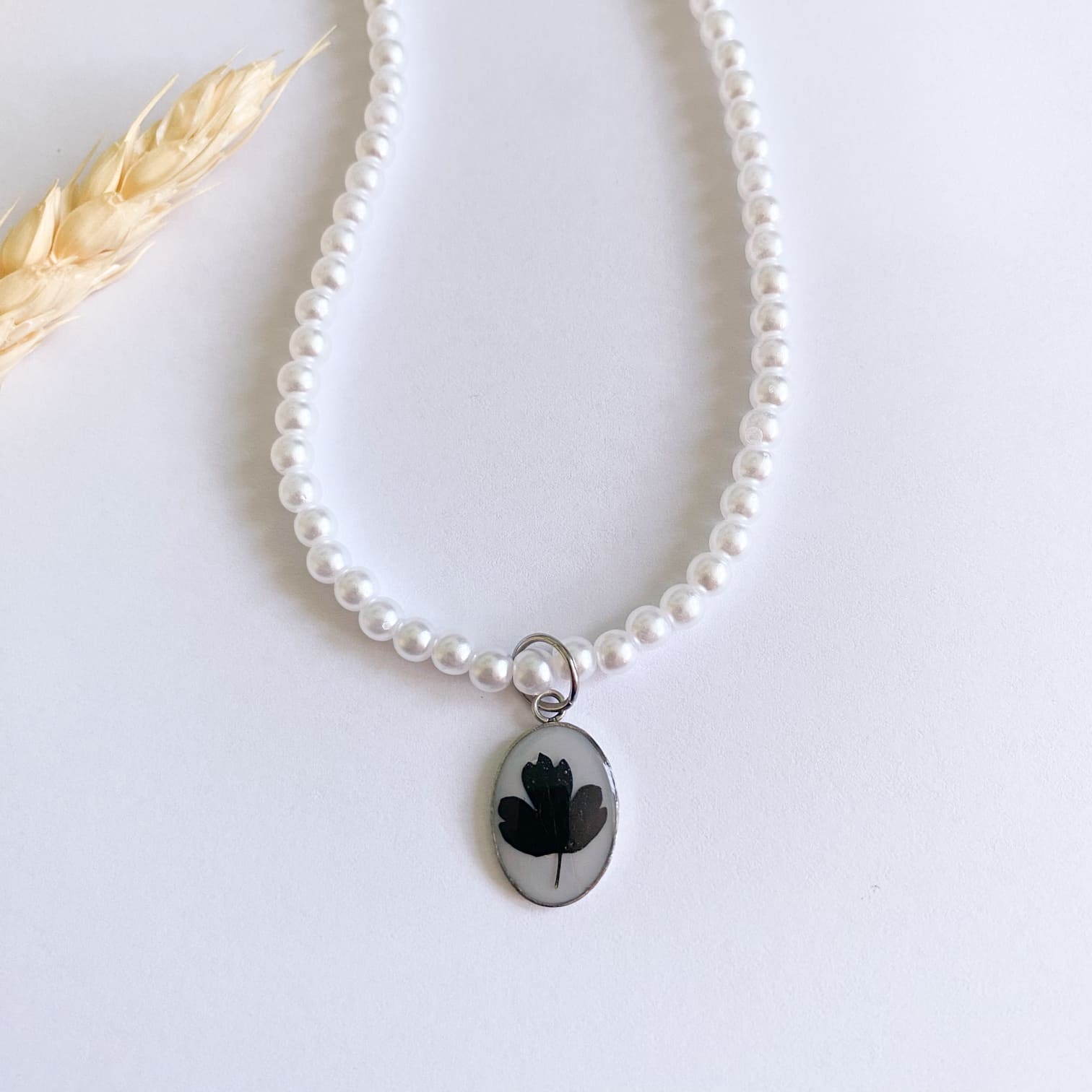 Colier cu perle de sticlă și floare neagră