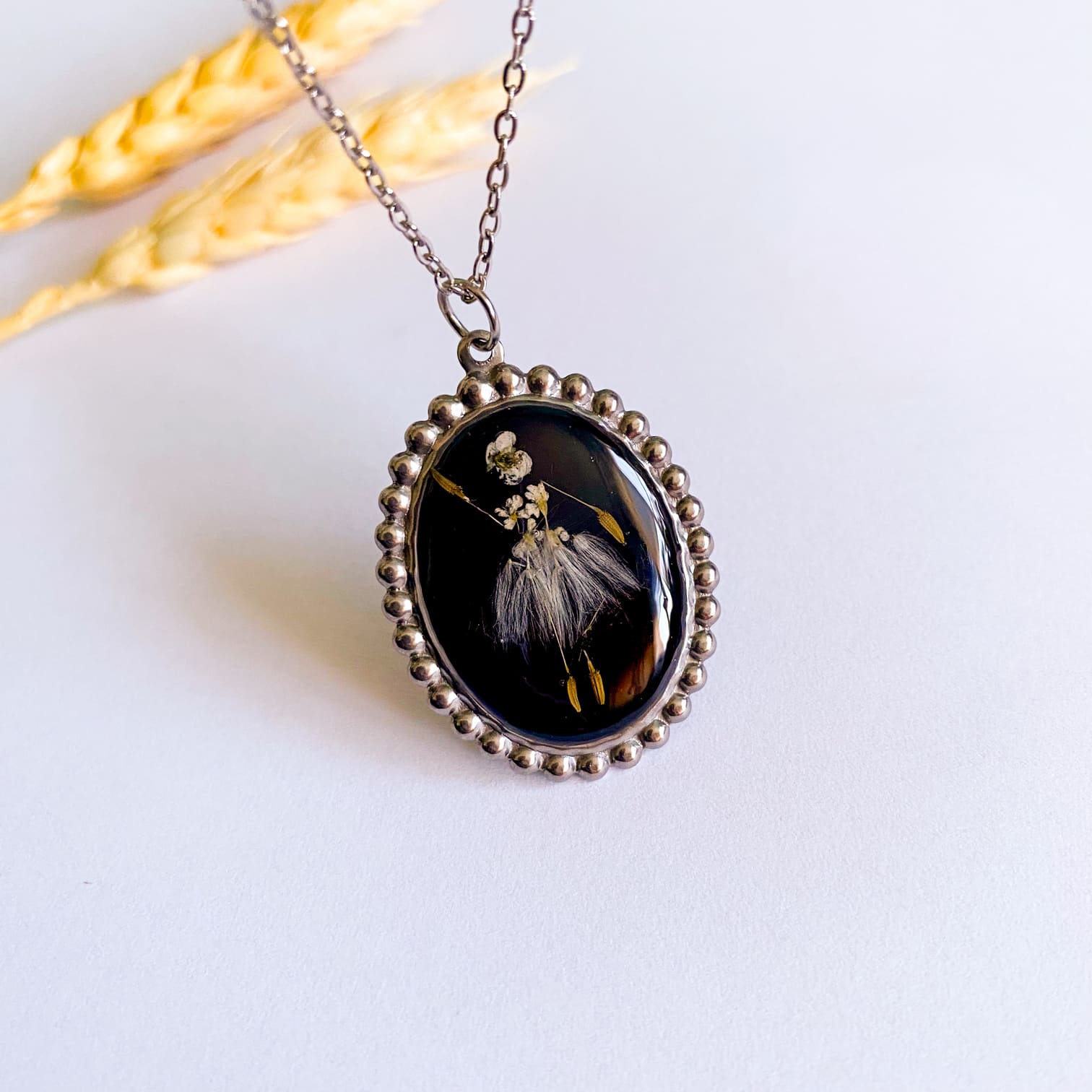 Descoperă frumusețea naturii în acest lanț unic, ce conține flori naturale și puf de păpădie, încapsulate în rășină UV. Este perfect pentru ținuta ta de zi cu zi, adăugând un plus de farmec și eleganță, dar și pentru evenimente mai speciale.