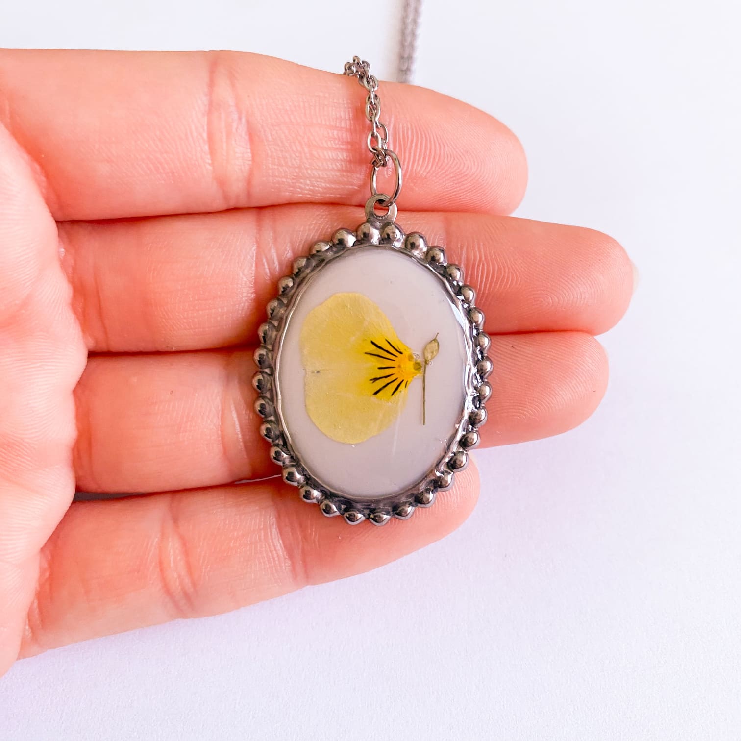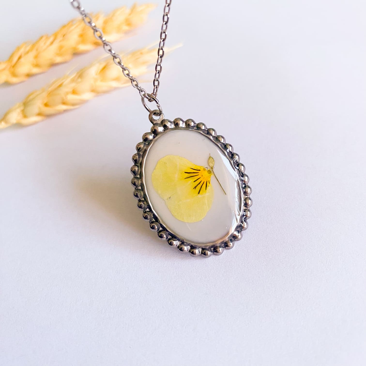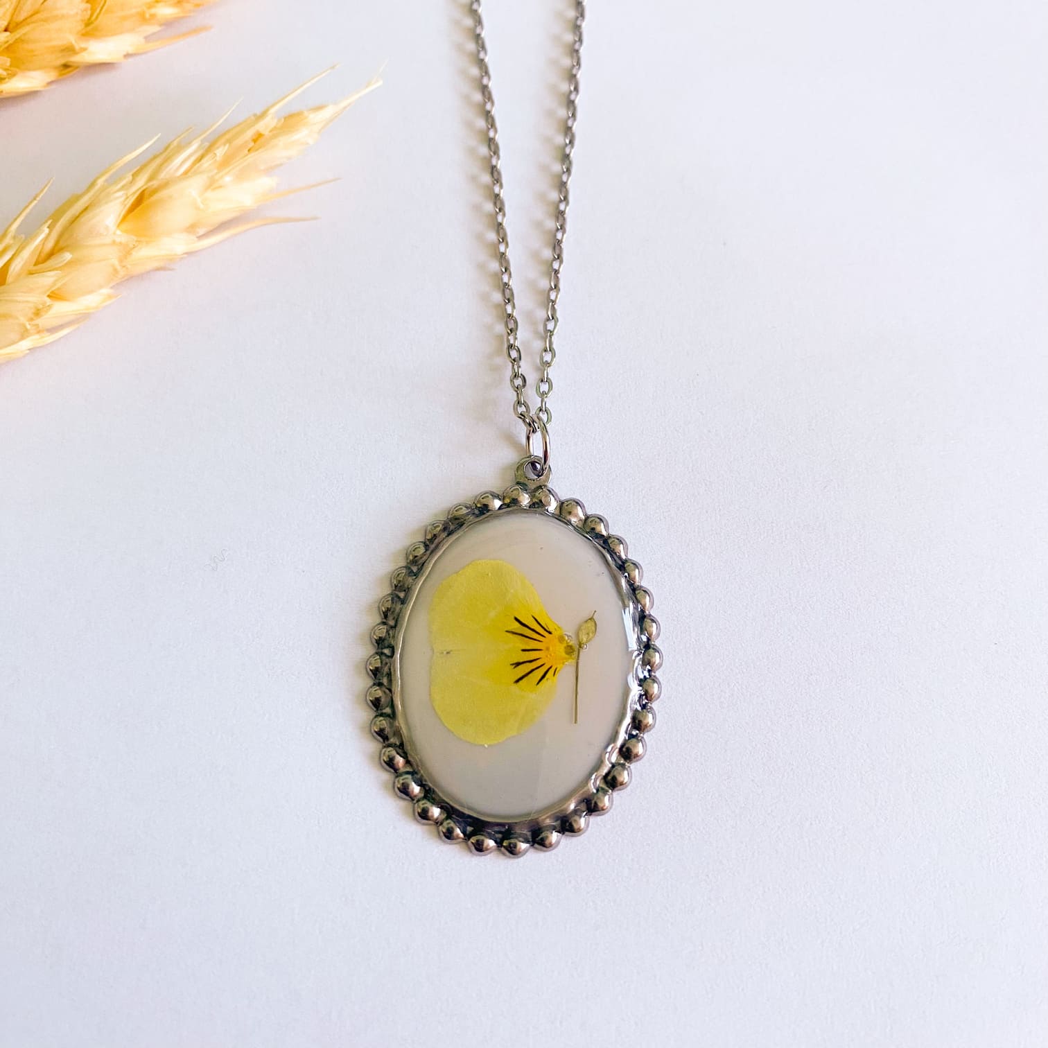 Descoperă frumusețea naturii în acest lanț unic, ce conține o petală de panseluță sub forma unui fluture, încapsulată în rășină UV. Este perfect pentru ținuta ta de zi cu zi, adăugând un plus de farmec și eleganță, dar și pentru evenimente mai speciale.