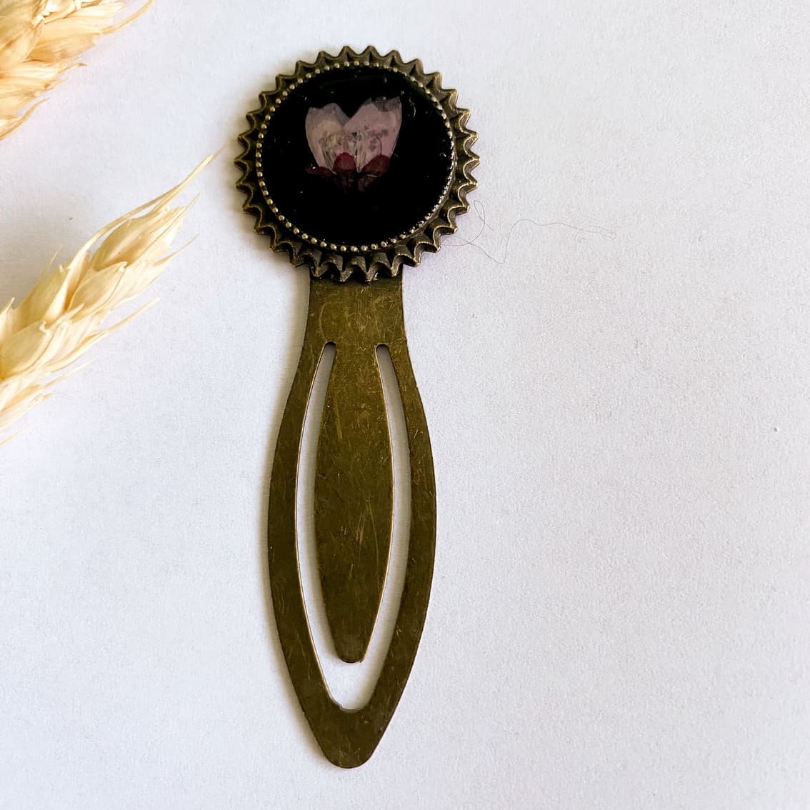 Semn de carte handmade cu aspect vintage, ce conține un boboc roz încastrat cu grijă în rășină UV. Este perfect pentru pasionații de citit și cei care vor să păstreze cu ei o părticică din natură.