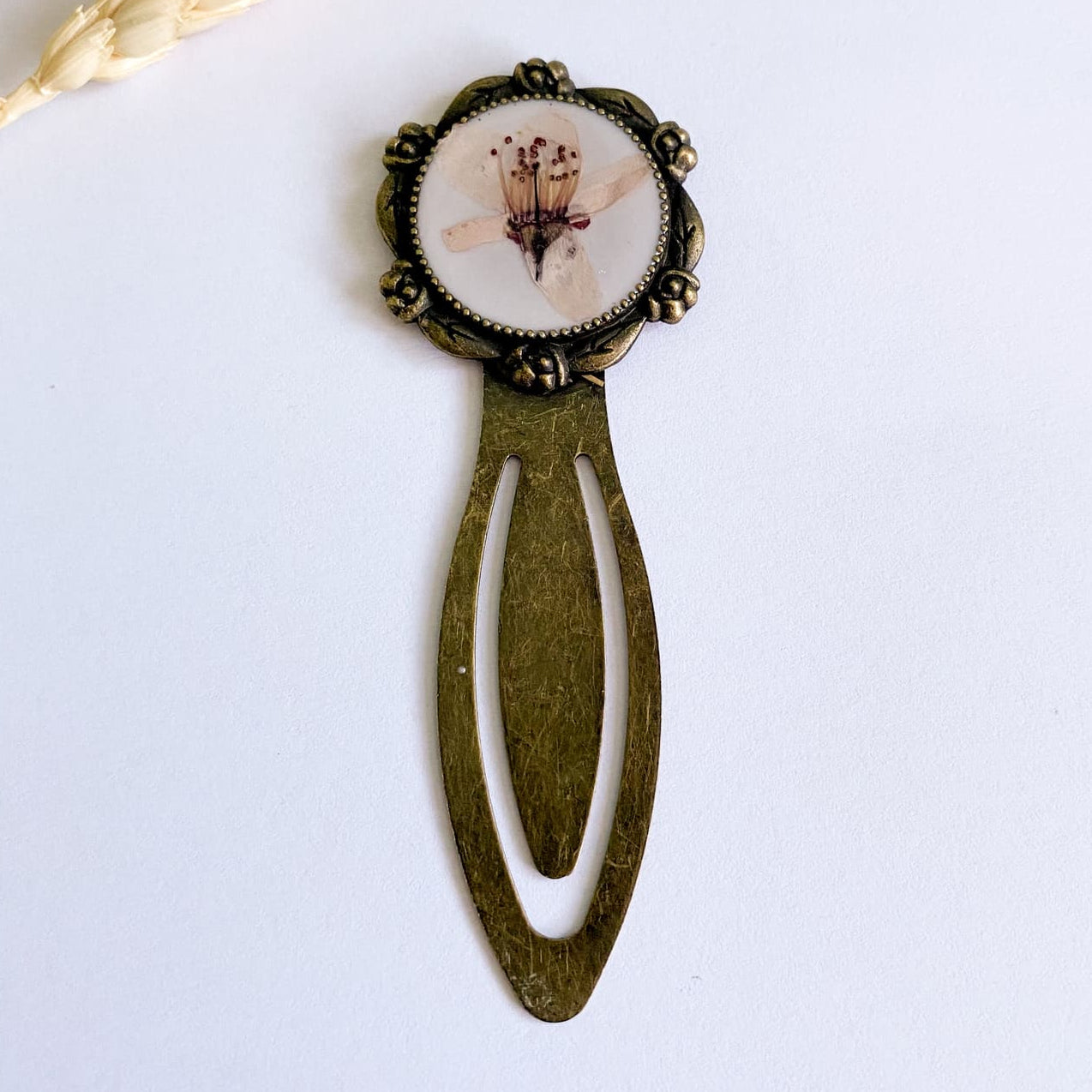 Semn de carte handmade cu aspect vintage, ce conține o panseluță încastrată cu grijă în rășină UV. Este perfect pentru pasionații de citit și cei care vor să păstreze cu ei o părticică din natură.