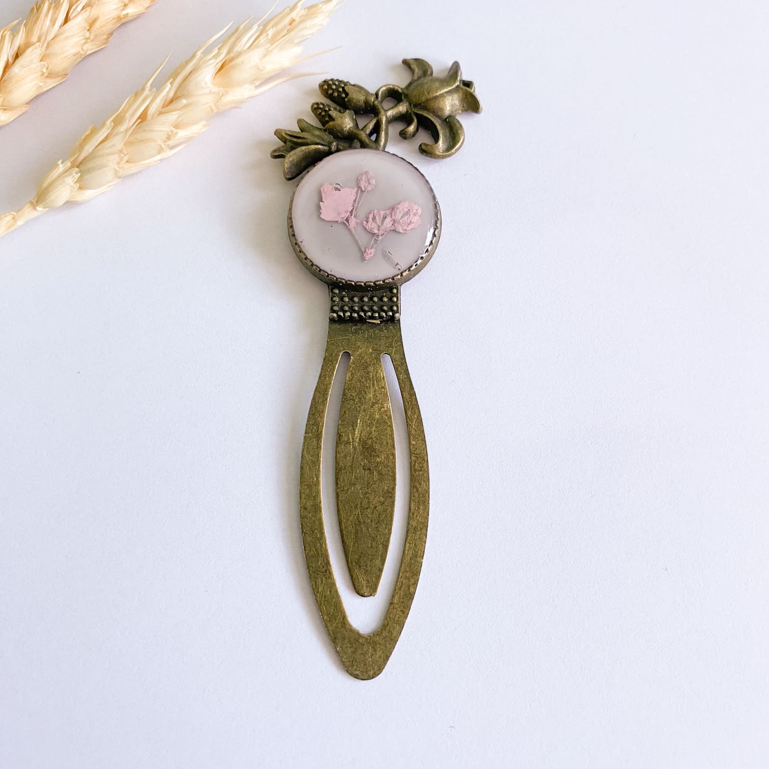 Semn de carte handmade cu aspect vintage, ce conține o panseluță încastrată cu grijă în rășină UV. Este perfect pentru pasionații de citit și cei care vor să păstreze cu ei o părticică din natură.